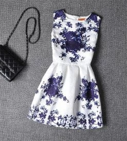 This is a sleeveless printed princess dress for little girls which will make an ideal christmas gift.