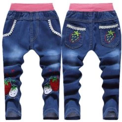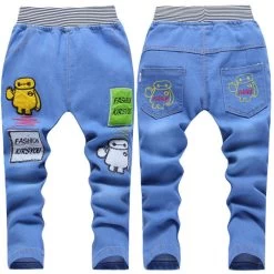A denim pant with elastic waist and cartoon patterns as design. This long jean pant is straight and appropriate for toddler boys.