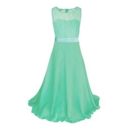 Introducing the Lace Flower Girl Dress Children Kids Beautiful Wedding Party Dress Girl Formal Party Pageant Long Princess Dress lace002, the perfect attire for your little princess to shine at any special occasion! Crafted from high-quality lace and designed to impress, this stunning long dress is ideal for weddings, pageants, and formal parties. It features a beautiful A-line silhouette that flatters every child, allowing her to twirl with grace and confidence.