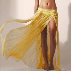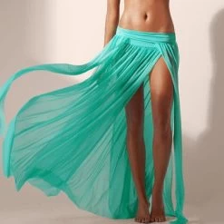 Hot transparent chiffon flowing skirt of European style for women which is slited and will make a perfect beach wear during summer.