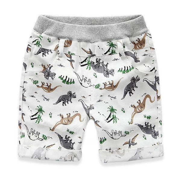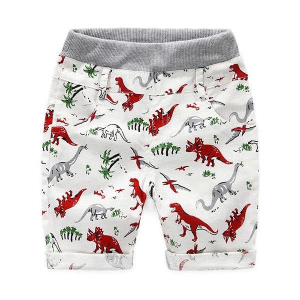 Little boys loose short of dinosaur patterns for beach outings. Boys between the ages of 2 to 7 can comfortably wear this short.