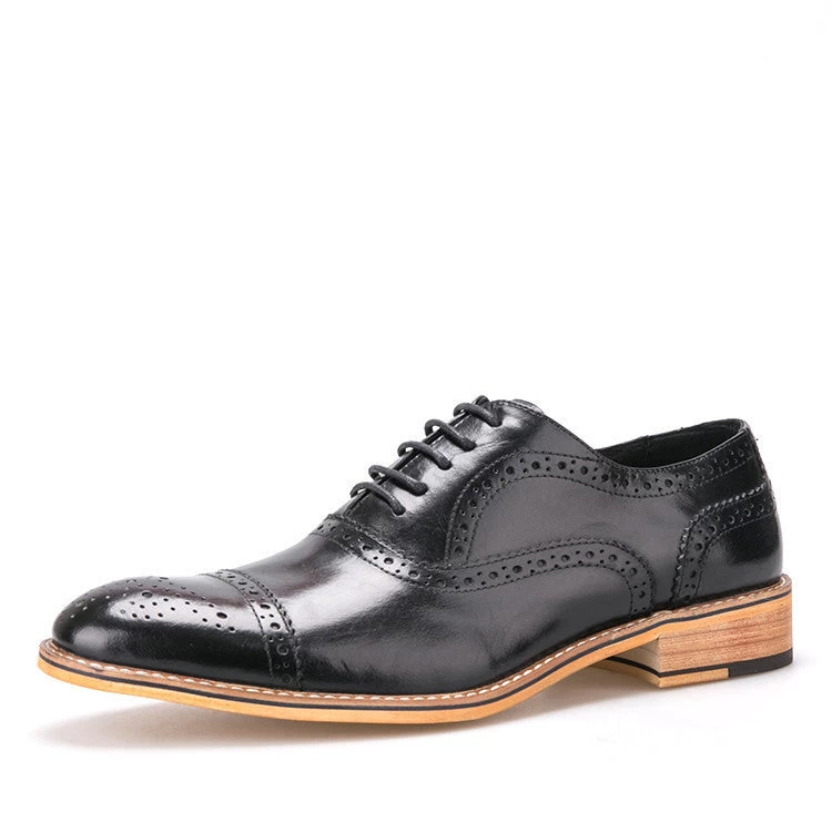 Step into sophistication with our Men Oxfords Shoes British Style Carved Genuine Leather Shoe Brown Brogue Shoes Lace-Up Bullock Business Men’s Flats. Designed for the modern gentleman, these shoes embody the perfect fusion of style and comfort, making them an ideal choice for both casual outings and business environments. Crafted from premium full-grain leather, each pair showcases exquisite handcrafted detailing that adds a unique charm to your wardrobe.