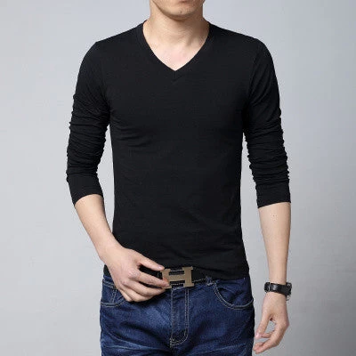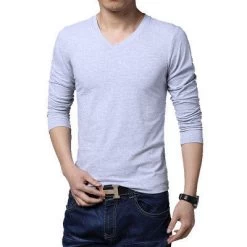 Upgrade your wardrobe with the Men’s fashion Spring and Autumn Slim-type long-sleeved T-shirt Pure cotton casual V-neck men’s large size X-5XL and experience the perfect combination of comfort, style, and versatility.