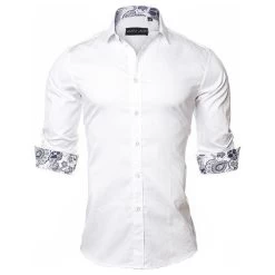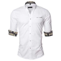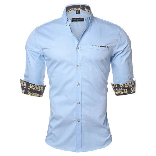 A casual and fashionable dress shirt made of cotton, square collar. Men’s casual long sleeve. It comes in different colors and sizes.