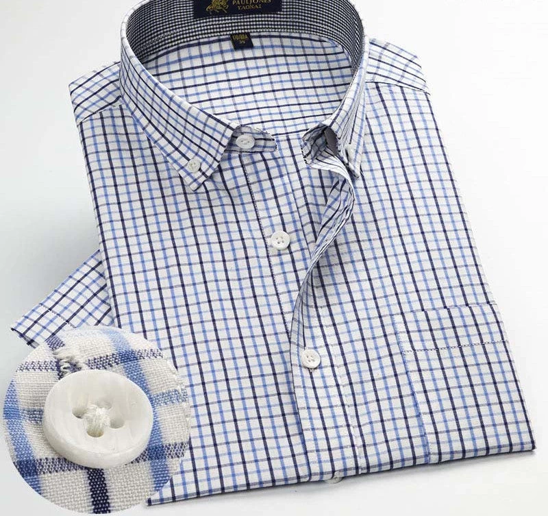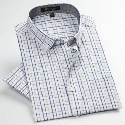 Introducing our Men’s shirts Fashion Casual Plaid short sleeve shirt men Dress shirt spring summer style shirts for man, a perfect blend of comfort and style tailored for the modern man. This shirt features a trendy plaid pattern that exudes sophistication and versatility, making it an essential addition to your wardrobe. Crafted from a high-quality mix of cotton and polyester, it ensures a soft, breathable feel, ideal for those warm spring and summer days.