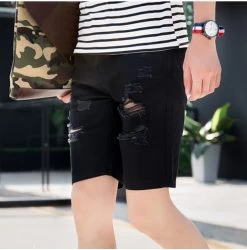 Casual and comfortable men shorts with a mid waist and regular pant style. It is made from cotton and ripped in decoration.