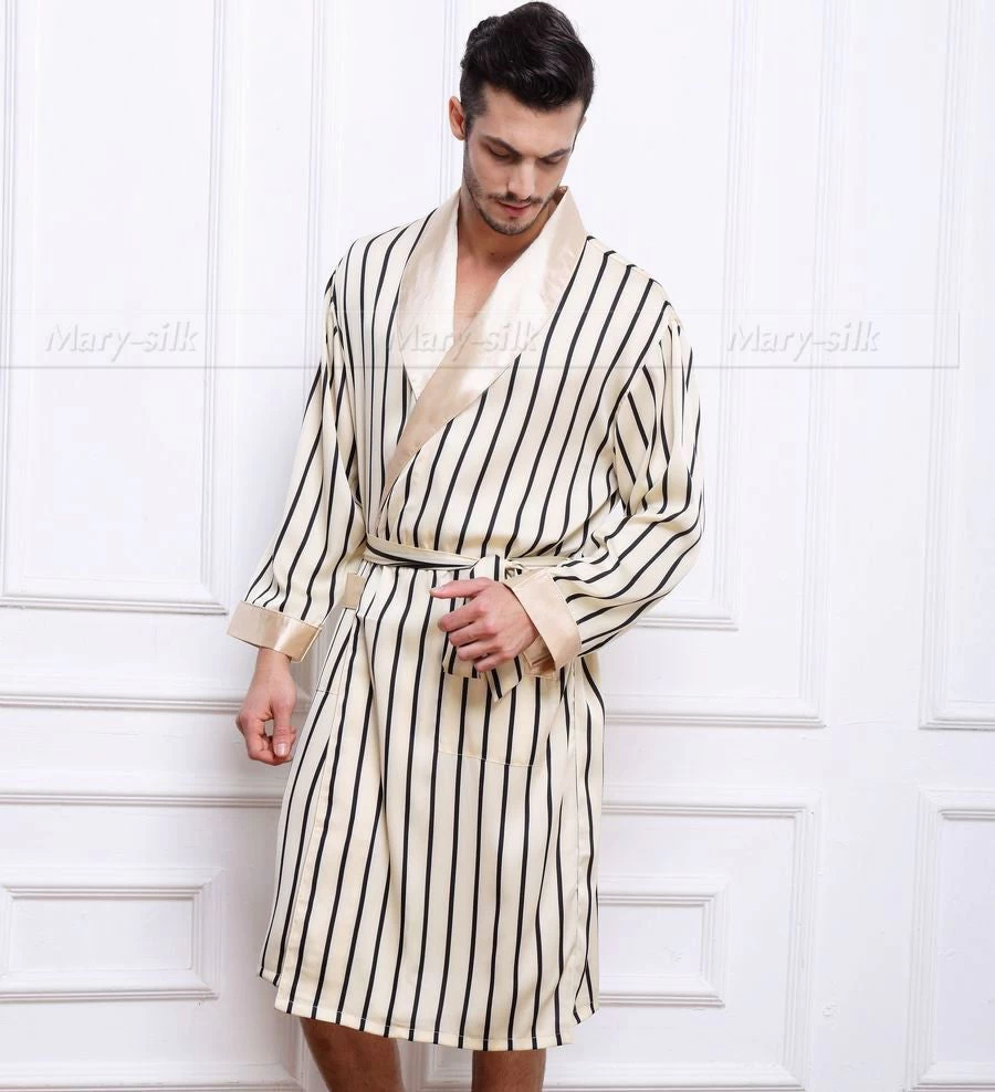 Introducing our luxurious Mens Silk Satin Pajamas Pajama Pyjamas PJS Sleepwear Robe Robes Nightgown Robes S M L XL 2XL 3XL Plus Beige Blue Striped, designed for the modern man who values comfort and style. Crafted from premium satin material, these robes offer a soft touch that feels incredible against the skin. The elegant striped pattern adds a touch of sophistication, making it perfect for lounging at home or unwinding after a long day.