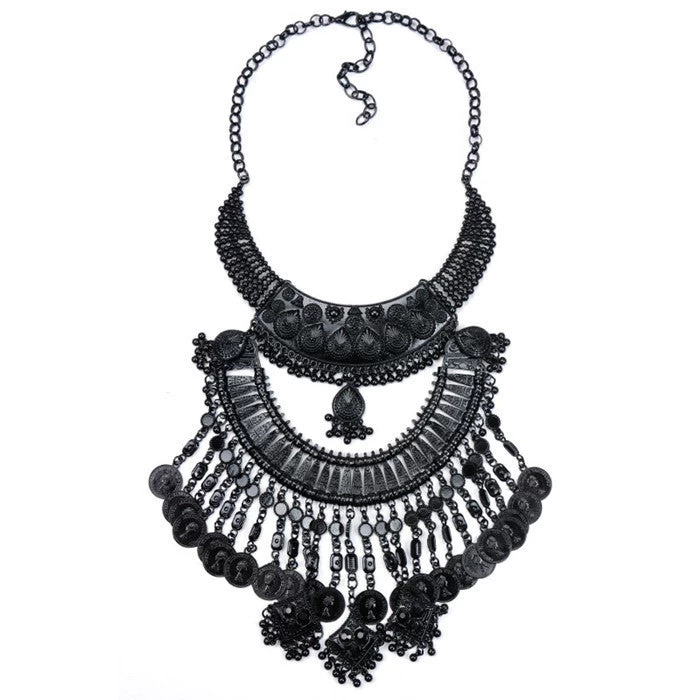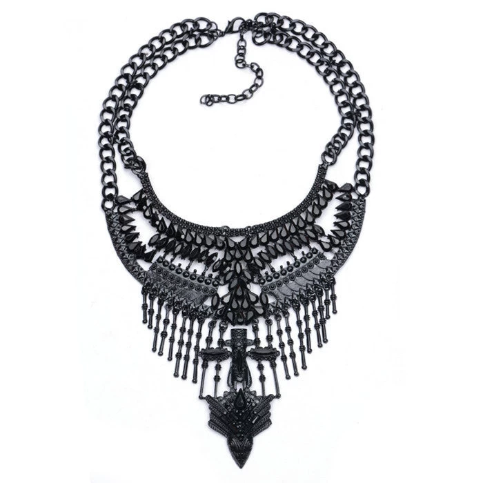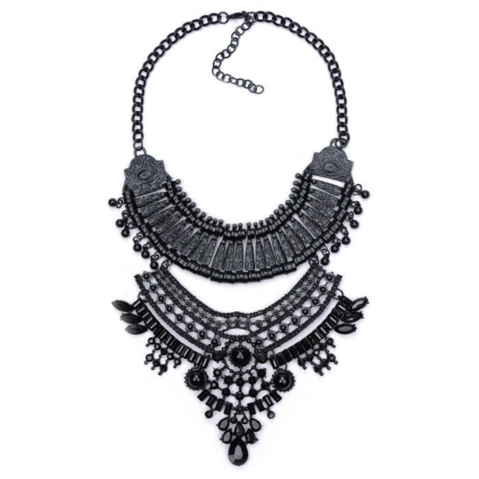 Explore the elegance of our Necklaces Pendant Black Statement Bijoux Fashion Crystal Jewelry Choker Maxi Boho Vintage Jewelry, a stunning piece that effortlessly combines modern style with vintage charm. Crafted with high-quality black crystals, this chic pendant necklace is designed to make a bold fashion statement. Perfect for any occasion, whether it’s an engagement, party, or as a delightful gift for a loved one, this necklace is a must-have addition to your jewelry collection.