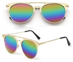 Vintage round fashion luxury flat mirror sunglasses for elegant ladies. The luxury sunglasses is of polycarbonate lenses material.