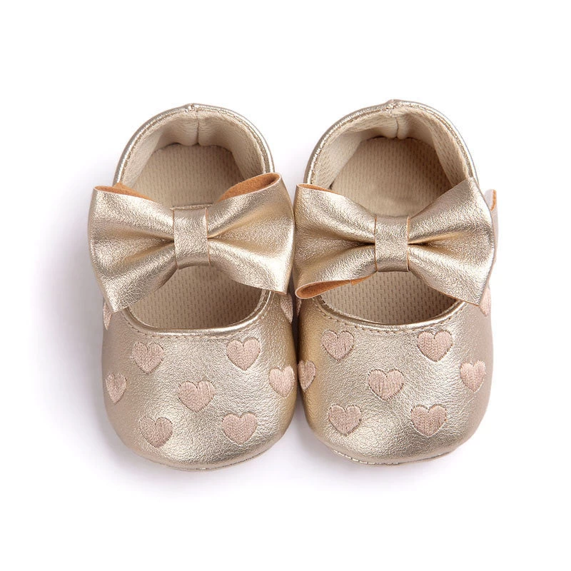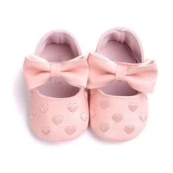 Heart shaped big bow leather pre-walking shoe with soft bottom for your newborn baby girl. It is an adorable ballet dress.
