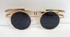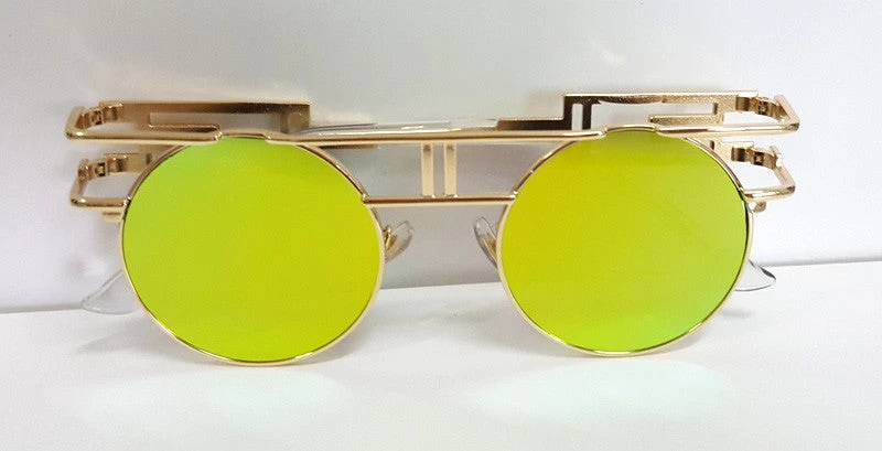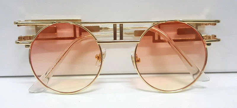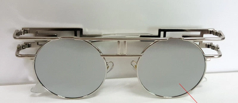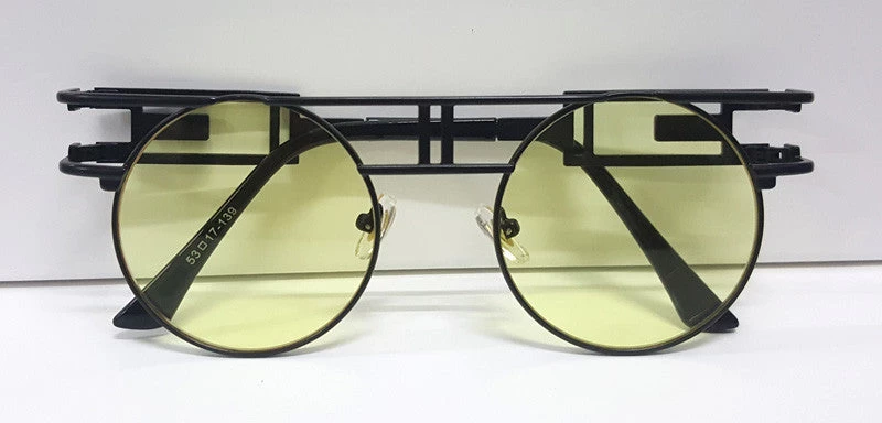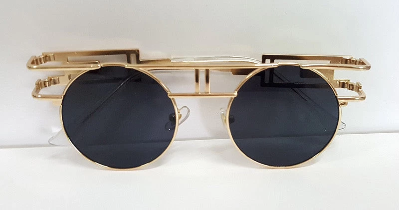 A designer vintage round gothic sunglasses of quality metal frame for men and women of high fashion taste. Looks cool on the face.
