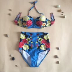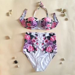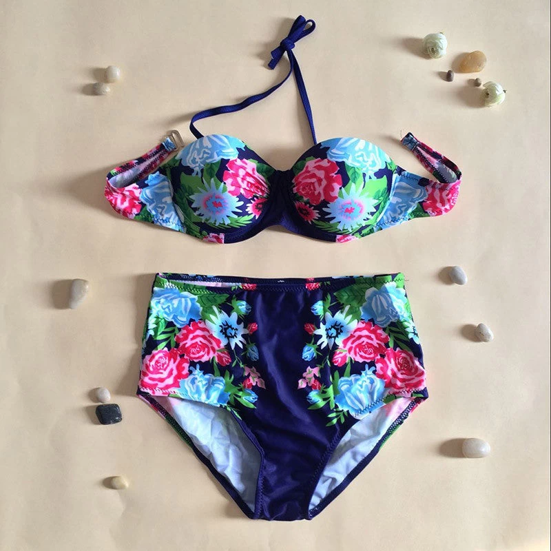 Experience effortless elegance and timeless sophistication with our Sexy High Waist Swimwear Plus Size Vintage Floral Print Push Up Bikini Set Women Bathing Suit S-XL today!