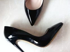 Pointed toe, slip on with platforms, rubber outsole, patent leather, basic pumps with thin heels, women fashion shoes.