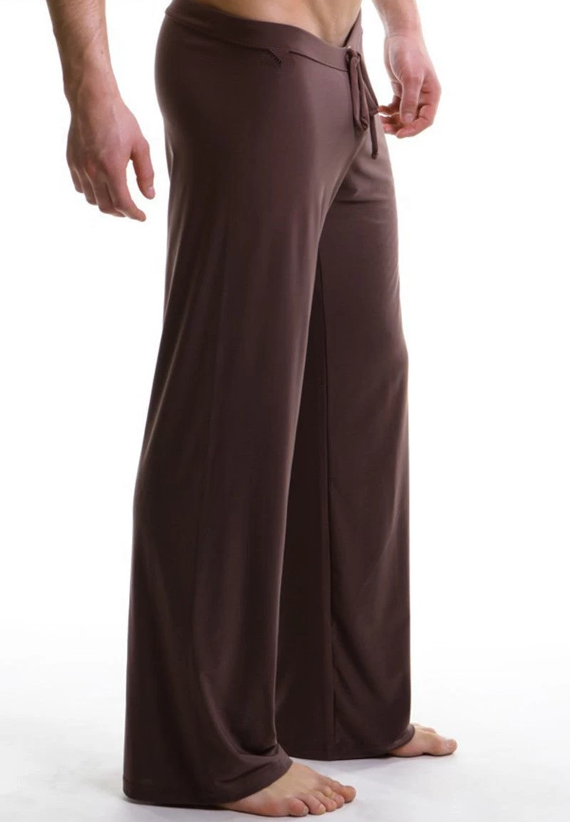Comfy and stylish, cutout design, solid pattern, nylon/satin/microfiber/spandex made loose pajama/long sleeping men pant.