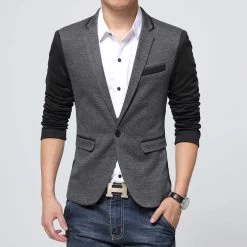 Introducing the Slim Fit Casual jacket Cotton Men Blazer Jacket Single Button Gray Mens Suit Jacket Autumn Patchwork Coat Male Suite, your new go-to piece for both casual outings and smart occasions. Crafted from a premium cotton blend, this stylish blazer offers unparalleled comfort while keeping you effortlessly fashionable. Its unique autumn patchwork design adds a contemporary twist to a classic silhouette, making it a standout addition to any man’s wardrobe.