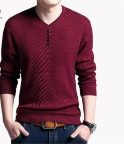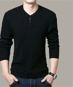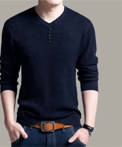 Introducing the Solid Color Pullover Men V Neck Sweater Men Long Sleeve Shirt Mens Sweaters Wool Casual Dress Cashmere Knitwear Pull Homme, a perfect blend of comfort and style. Crafted from a luxurious mix of cotton, cashmere, and wool, this pullover is designed for the modern man who values both elegance and functionality. With its classic v-neck design and solid color, it effortlessly elevates any casual outfit.