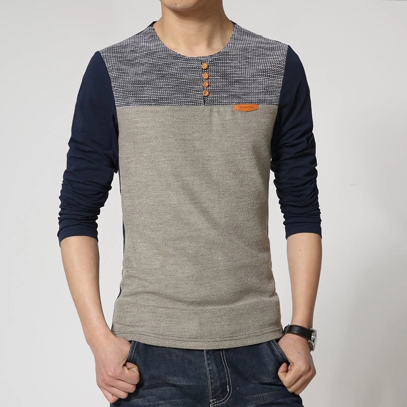 This fine dress made for slim men is a T-shirt with O-neck shape and a long sleeve length. A good choice in spring season for casual outings.