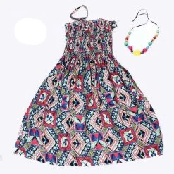 This is a sweet bohemian style with fine prints beach dress for girls of about 2-11 years old. It also comes with a free necklace.