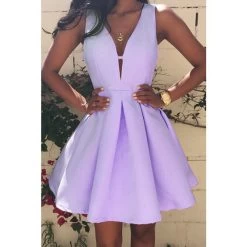 Sexy mini dress made for women of different sizes. It is a pink sleeveless deep V-neck backless dress for club and evening party.
