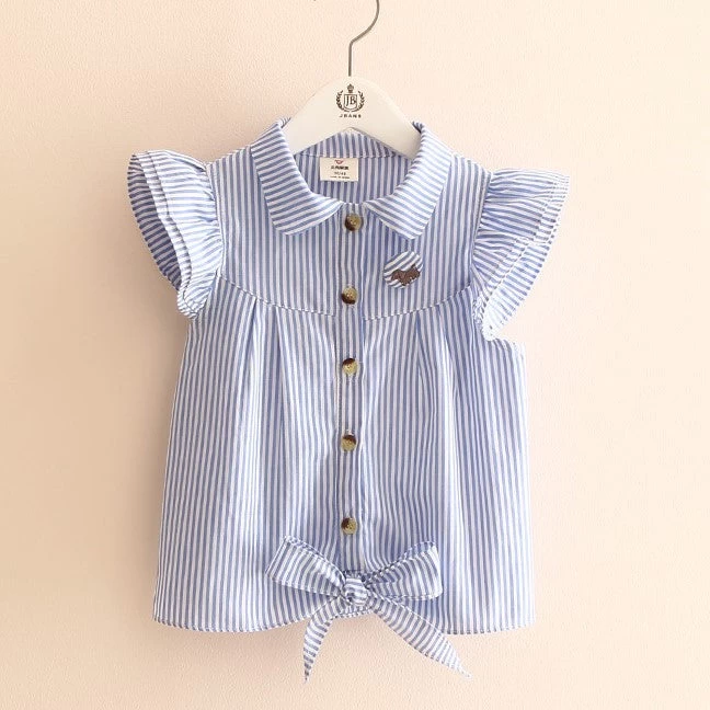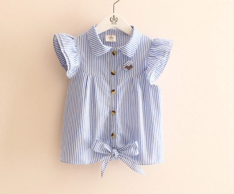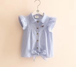 Baby girls can be rest assured to look cool when they put on this striped butterfly sleeve summer blouse.