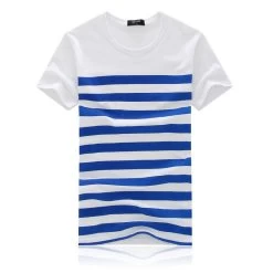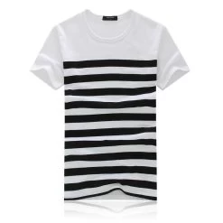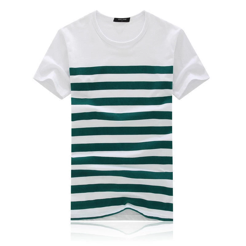 This is a very comfortable striped short sleeve fringe printed T-shirt for men. An outfit best for summer outings.