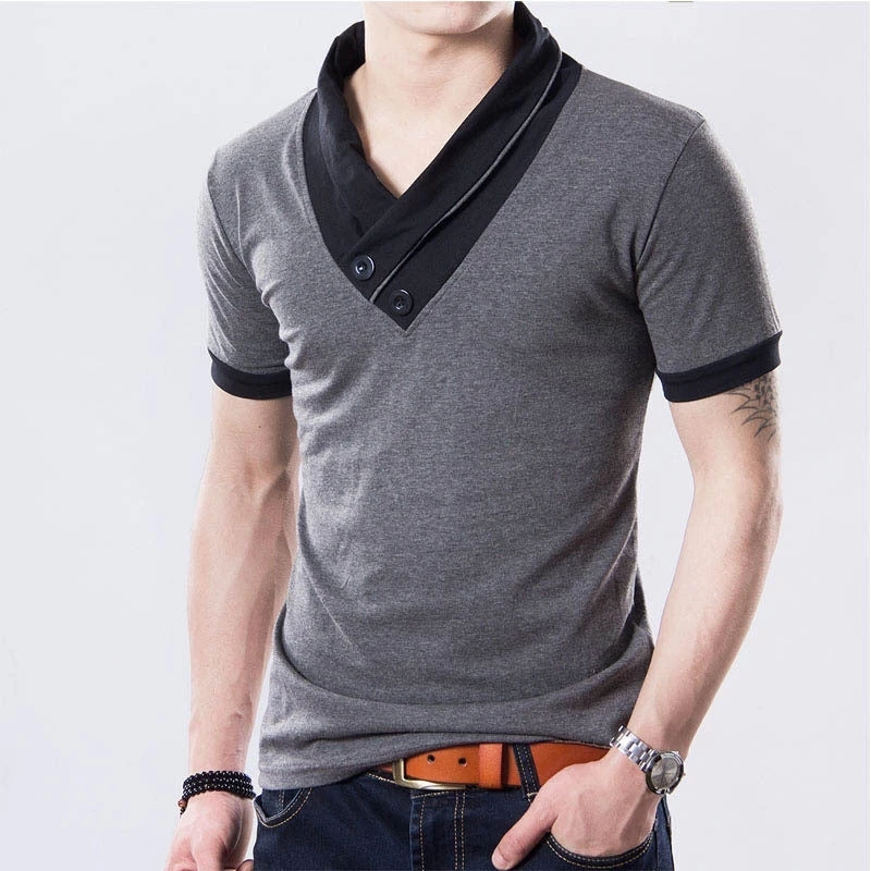 This is a short sleeve V-neck and a well-fashioned slim fitted leisure T-shirt for men. Available in larger sizes too.