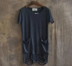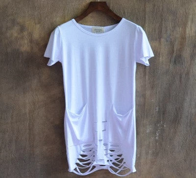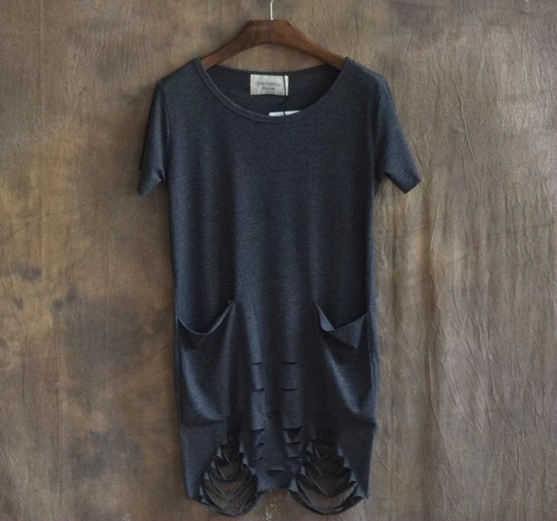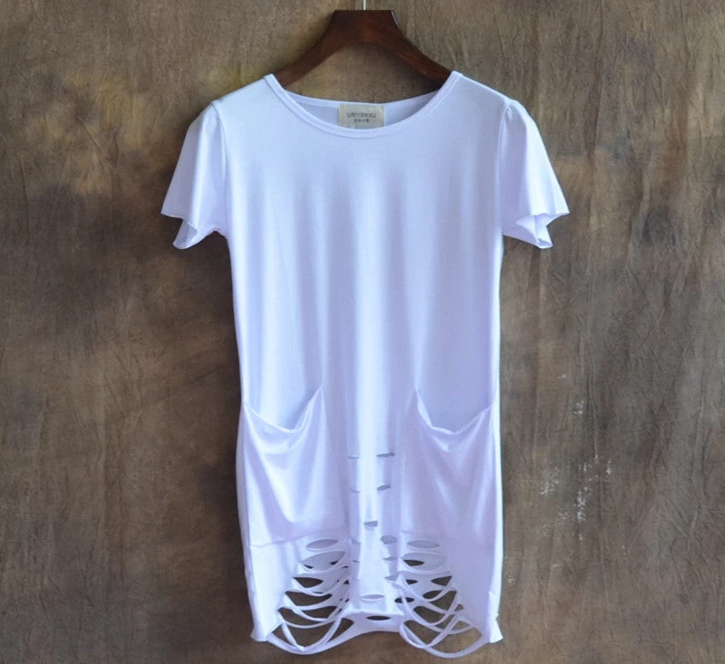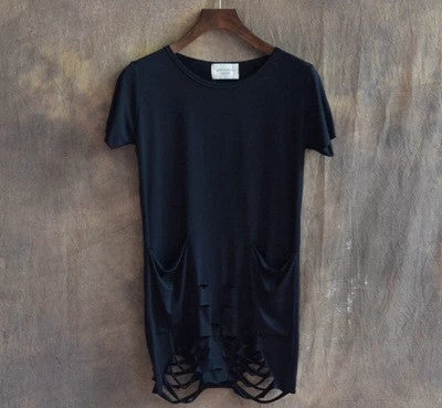 European and American city boy/men short sleeve T-shirt with hole bottom for casual outings during summer.