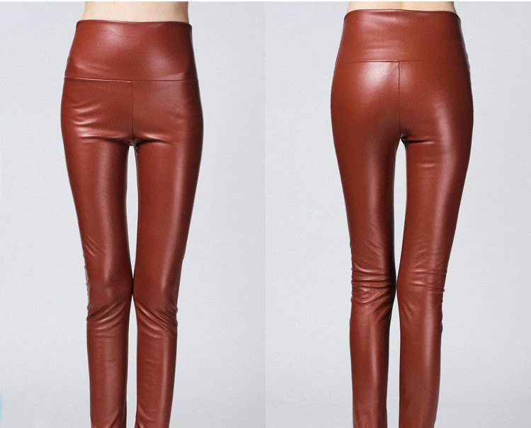 A very sexy thick high waist elastic fleece slim pencil leather pant for women. It is a winter trousers that is available in 25 colors.