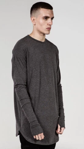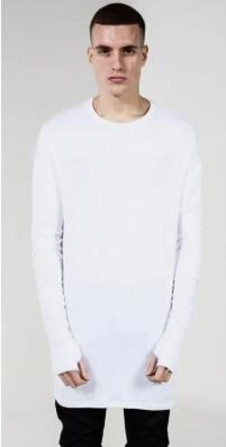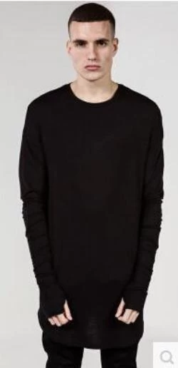 Hip-hop style wool T-shirt for men, long in sleeves and also split at the side to give men more style and swag.