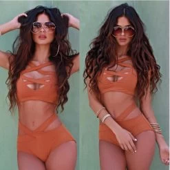 This criss cross two piece bikini is cut out in all the right places to accentuate your body.