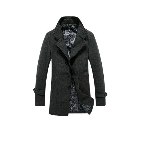 Classy, wool blend, single-breasted, button decoration, mandarin collar, long clothing length, conventional cuff style, nylon and bamboo men coat.