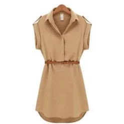Casual dress shirt with belt for fashionable women. The summer dress is appropriate as a beach wear, office wear and party wear.