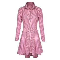 An elegant long sleeve mini dress pf striped pattern that can serve as an office wear for autumn and winter seasons.