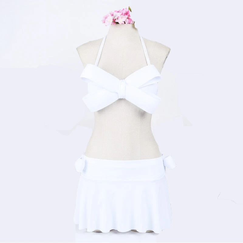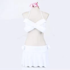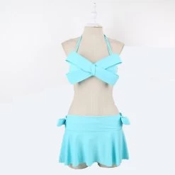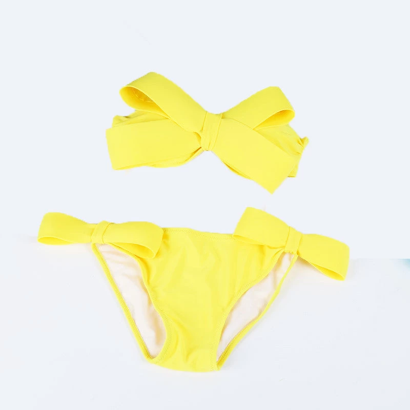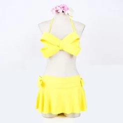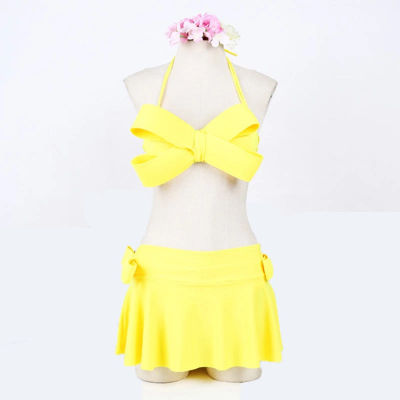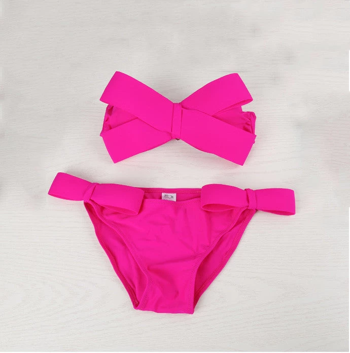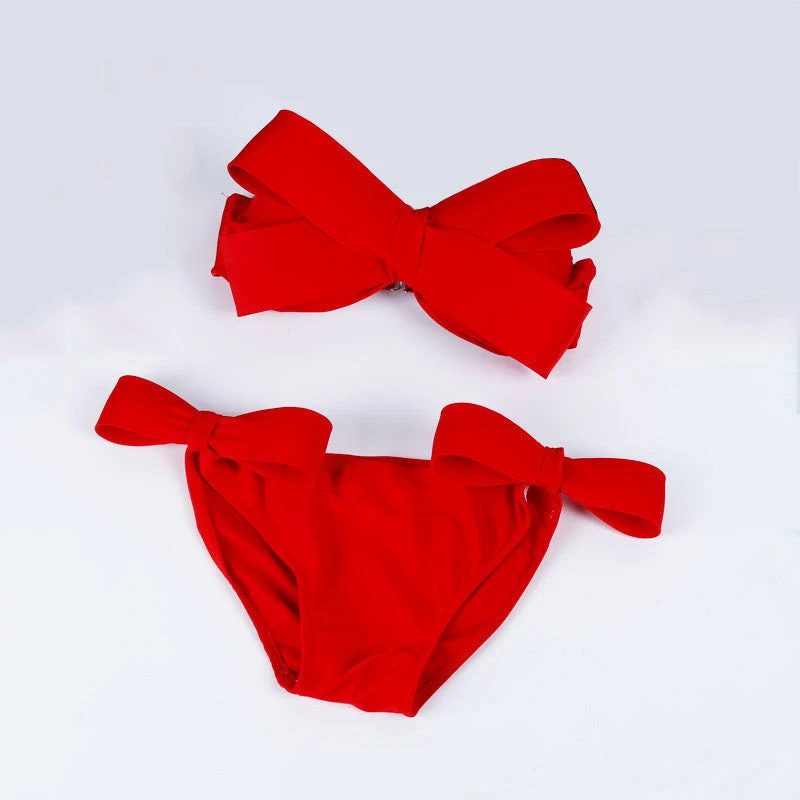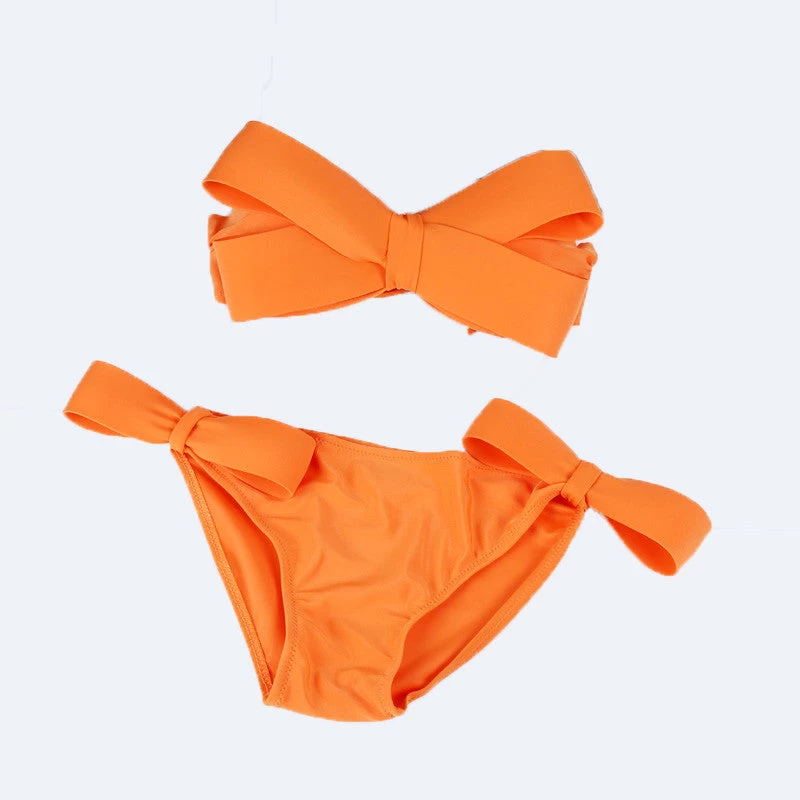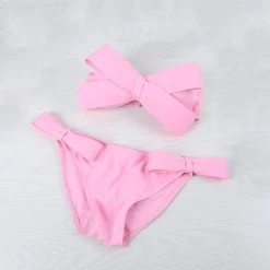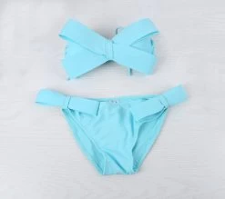 A solid bikini of halter neck style and big bow top design that offers style along with comfort.