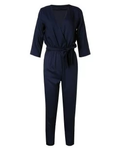 Stylish and comfortable, solid pattern, ankle length pants, regular fit, v-neck, half sleeved with sashes decoration, cotton and polyester jumpsuits.