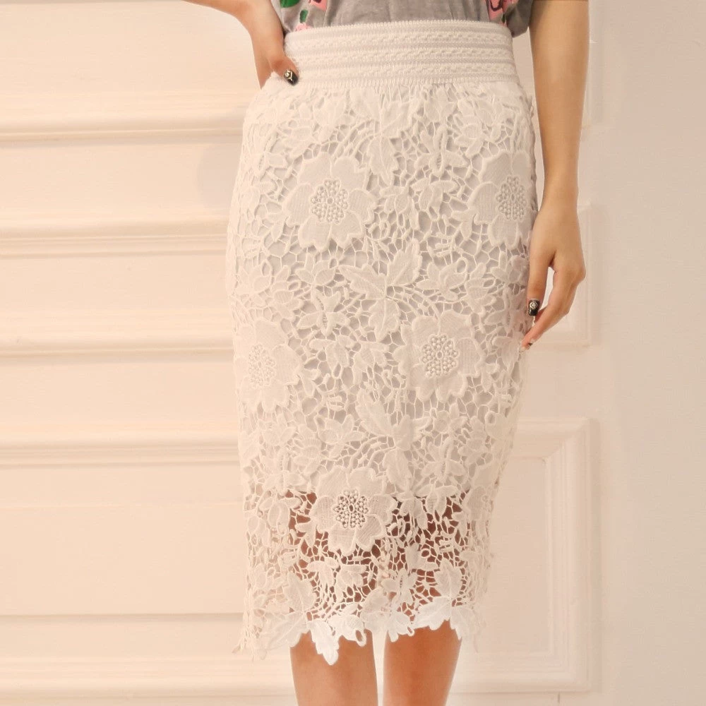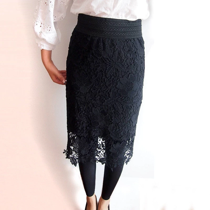 Embrace effortless elegance with this exquisite skirt that promises to enhance your style. Whether dressing up for a night out or keeping it casual, the Women Lace Skirt A-Line Hollow Out White Black Skirt Knee Length Plus Size S-3XL is a must-have for any fashion-forward woman.