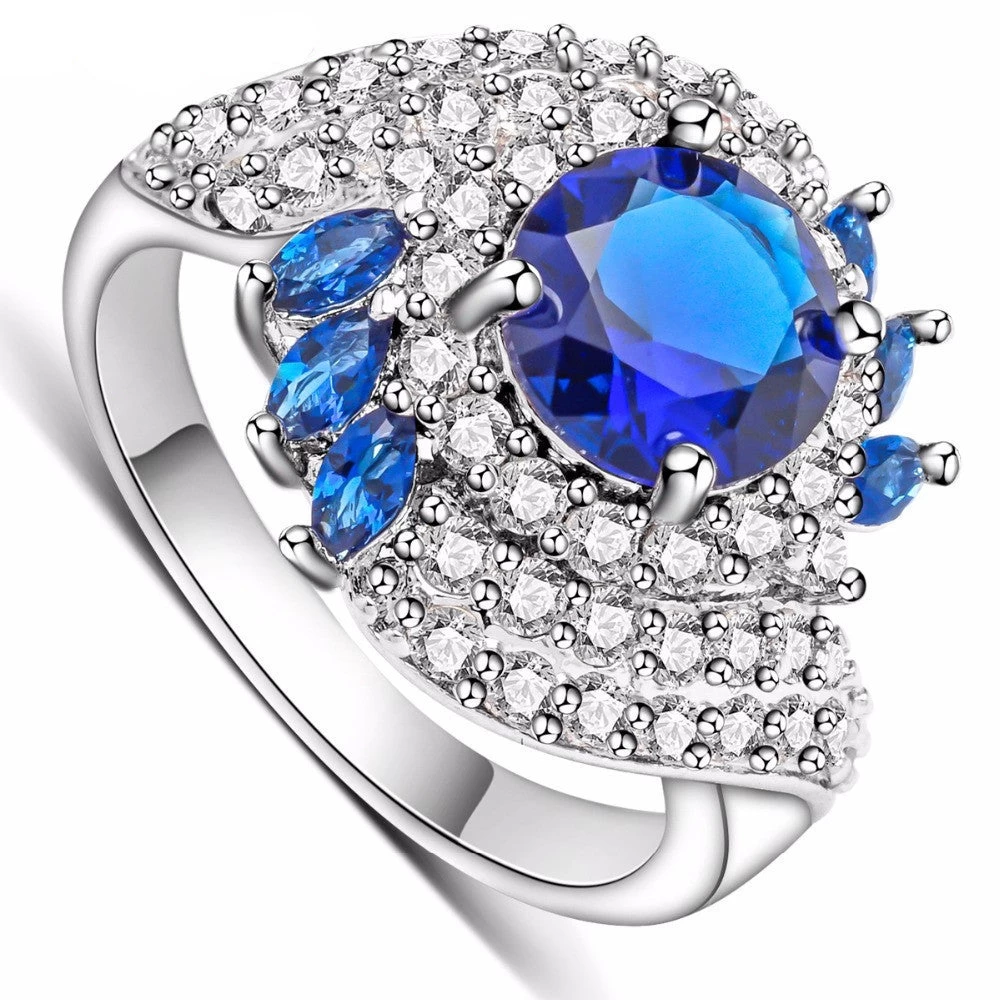 Enhance your style and make a lasting impression with the Women’s Rings White Gold Filled Dark Blue zircons Jewelry Wedding Engagement Ring ALP0281 today!