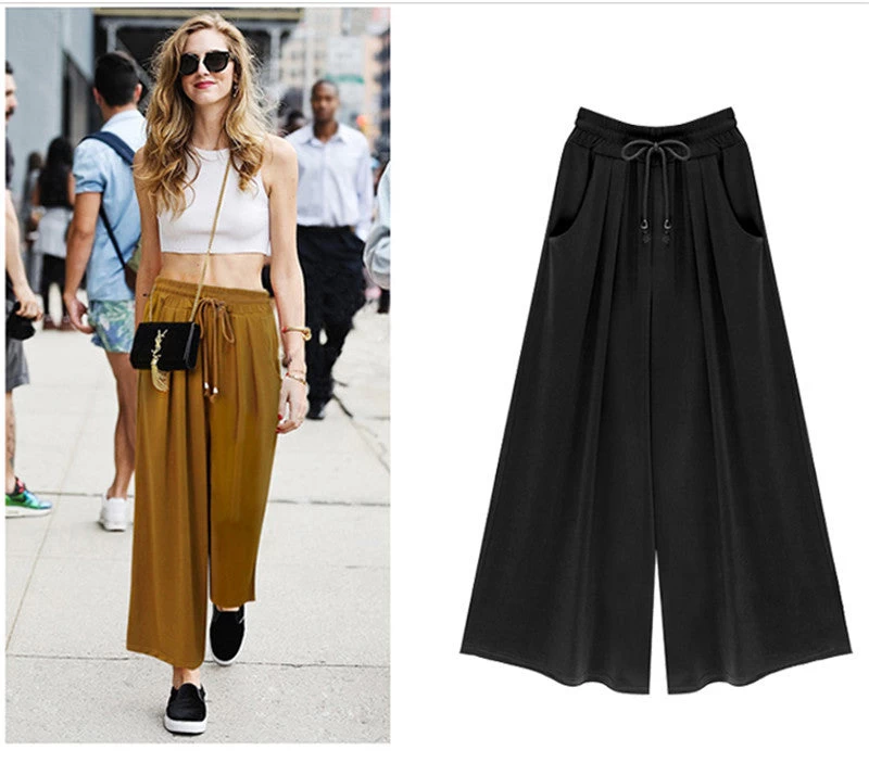 Wide leg, pleated, elastic waist, casual, ankle length pant, designed for the chic fashionista. Fits perfectly to size and it is ideal for an outing with the girls on a casual afternoon.