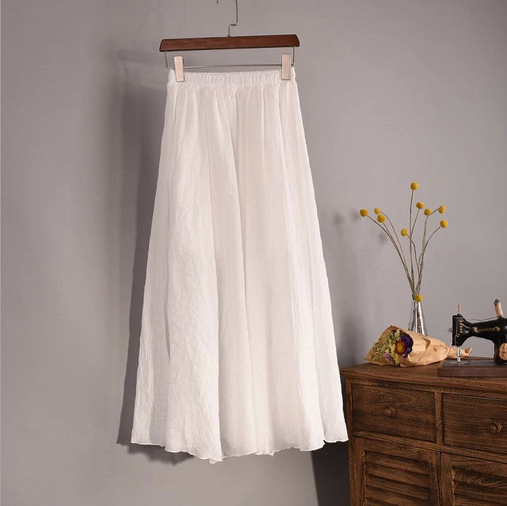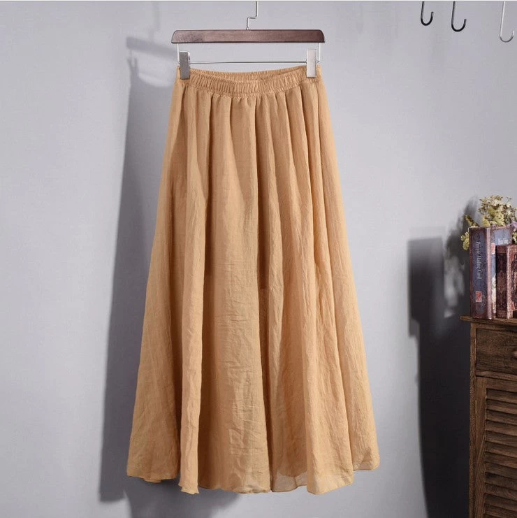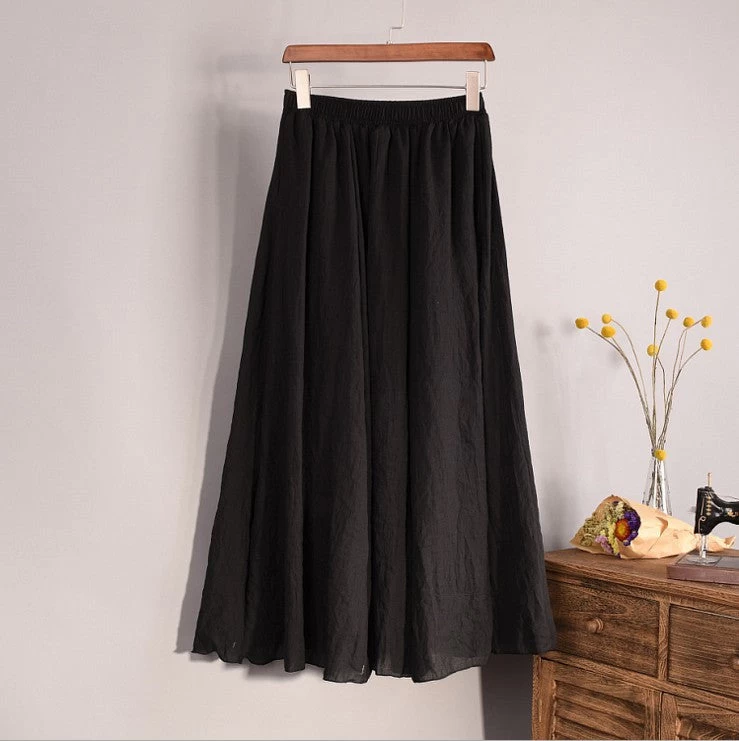 Discover the ultimate in style and comfort with our Women Top Cotton and Linen Long Skirt Elastic Waist A-line Pleated Maxi Beach Vintage Summer Skirts. Crafted from a premium blend of cotton and linen, this elegant maxi skirt is perfect for those sunny days at the beach or casual outings. Its elastic waist ensures a comfortable fit while accentuating your natural silhouette, making it a staple piece in your summer wardrobe.