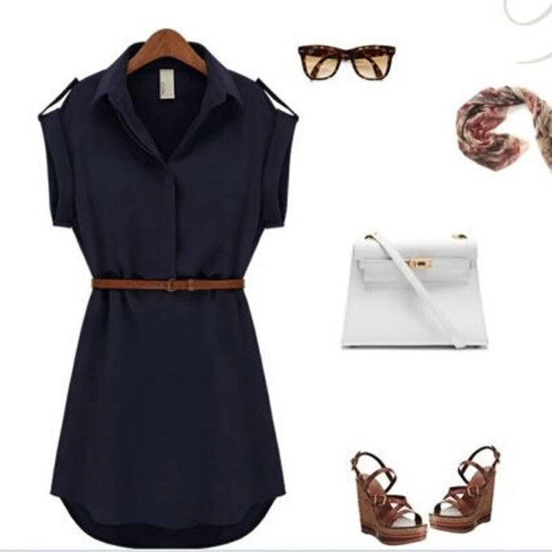 Introducing the Womens dress summer Short A-Line solid Plus Size chiffon casual dresses with belt for Party Beach Office summer style, the ultimate choice for the modern woman seeking both comfort and elegance. This stunning dress features an empire waistline that beautifully accentuates your figure while the A-line silhouette adds a touch of sophistication to your summer wardrobe.