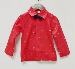 Children Clothing Fashion Full Printed Bow Tie Kids Clothes Gentleman Boys Shirts For 2-10 Years